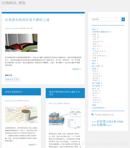 在官方博客中,经常会发布一些资深工程师编撰的博文,内容涵盖核心功能、热门话题、各种物理领域的仿真、高性能计算等。在这些博客中,您可以了解到仿真技巧、最新动态、高性能计算相关知识、活动信息等。加深对 COMSOL 的了解,以及仿真方面的经验和知识。