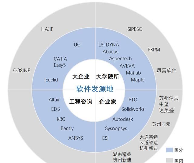 工业软件跟大学院所有着天生亲密的关系。这是由于工业软件需要深厚的数学基础、物理方程求解能力和计算机技术相互交融。这也使得很多工业软件成为从大学流出来的圣火。而这些大学的资金,一开始几乎全来自政府资助项目。而类似美国宇航局NASA有320多个国家实验室,也都是各种工艺软件的摇篮。这解释了政府资金和工业软件早期的关系。