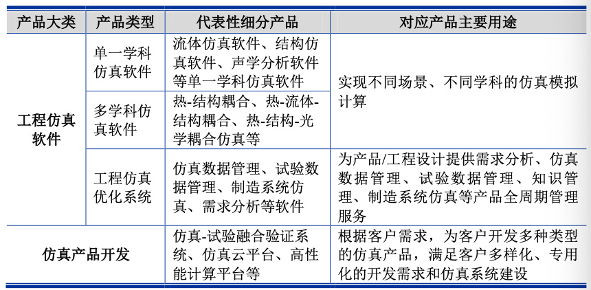 索辰科技的仿真产品开发业务是根据细分工程领域客户的具体需求,为客户提供定制化的仿真解决方案,主要包括解决特定工程问题的纯仿真软件产品开发,仿真-试验融合验证系统、高性能平台、仿真云平台等软硬件一体的仿真方案,为客户提供高性能运算、云服务、多学科仿真、试验等多种综合仿真服务。